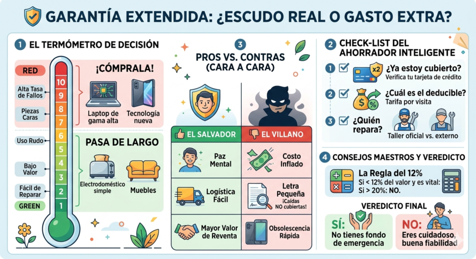La garantía extendida no es un timo, pero tampoco es una necesidad vital. Es un producto financiero. Si eres de los que prefiere pagar por adelantado para evitar sorpresas, adelante. Pero si tu presupuesto es ajustado, recuerda que muchas veces estás pagando por un miedo que, con un poco de suerte y buen cuidado, nunca se hará realidad.