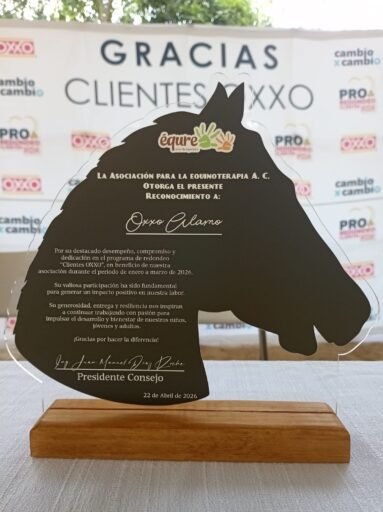 Entre aplausos, testimonios emotivos y un mensaje claro de solidaridad colectiva, se llevó a cabo la  la entrega oficial de los recursos recaudados a través del programa de redondeo de clientes de OXXO, bajo el proyecto Cambio por cambio a la Asociación para la Equinoterapia, Équre A.C.