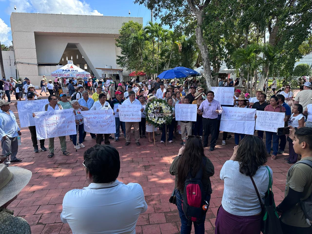 Participaron personas originarias de Dzitnup, Ixil, Kinchil, Molas, Santa María Chí, Sisal, Caucel y Yaxkukul y como acto simbólico de protesta pusieron una corona fúnebre ante la entrada de Chichén Itzá. Federico May, del Consejo Comunitario de Kinchil, afirmó: