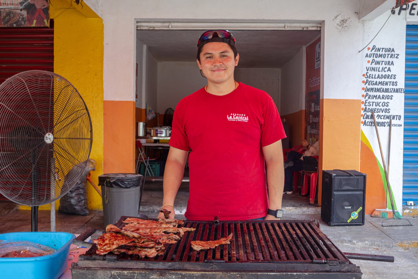 César Raymundo Castro Pool tiene apenas 24 años, pero ya cuenta con 7 años de experiencia en el negocio de los asaderos, con un sabor exquisito gracias a la calidad que manejan en la carne, pero el secreto de su sazón, es lo que hace que el asadero La Central se encuentre en 5 puntos de la ciudad: Canek, Avenida 86 Sur, Pacabtún, Caucel Almendros II y Mulchechén.