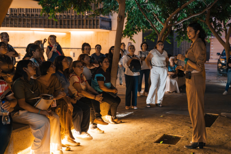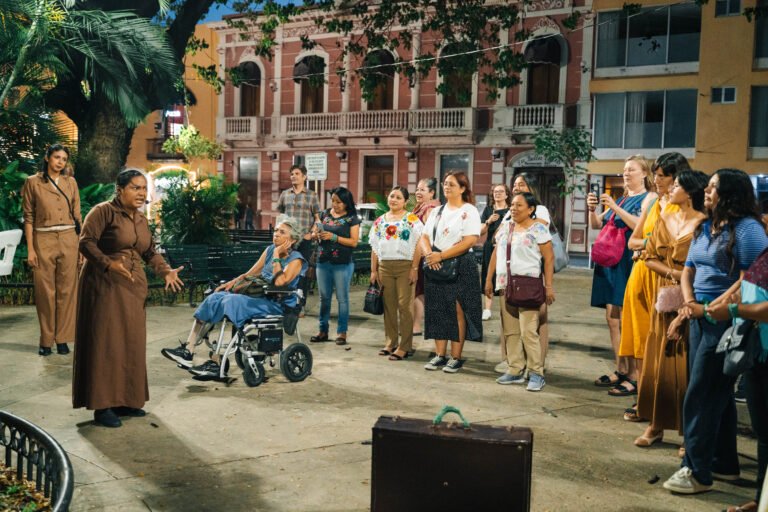 La jornada comenzó con la obra “Caminantes al encuentro”, a cargo de la colectiva “Corriendo con lobas”: un recorrido performativo que llevó a las asistentes desde el Parque de la Mejorada, en el Centro de Mérida, hasta el Teatro José Peón Contreras, evocando las rutas históricas hacia el Primer Congreso Feminista de Yucatán.