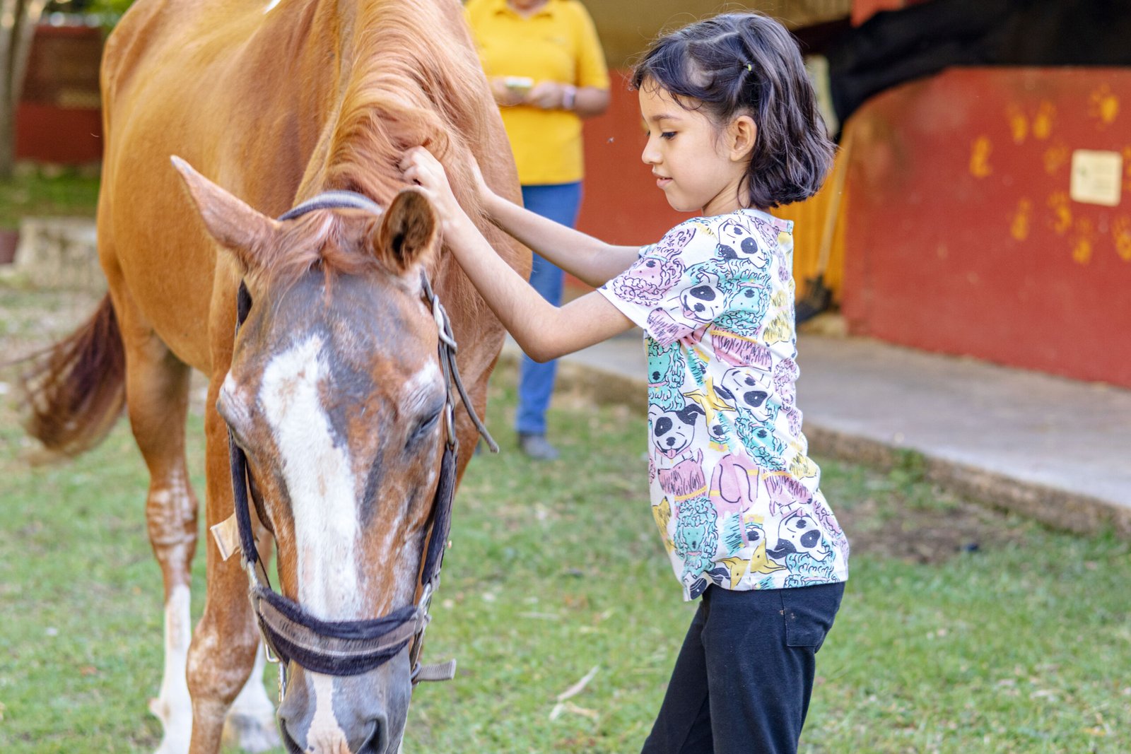 Lucas contesta por sí mismo que tiene seis años y se muestra muy contento al finalizar su terapia que, su madre explica, consiste en montar el caballo mientras recibe ejercicios para mejorar la psicomotricidad fina y gruesa, mientras también desarrolla su autonomía al darle instrucciones al caballo.