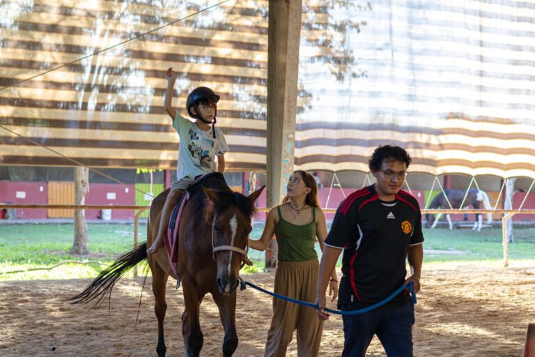 Lucas no solamente asiste a equinoterapia en Équre, sino que también toma terapia sensorial y terapia socioemocional que complementan sus procesos.