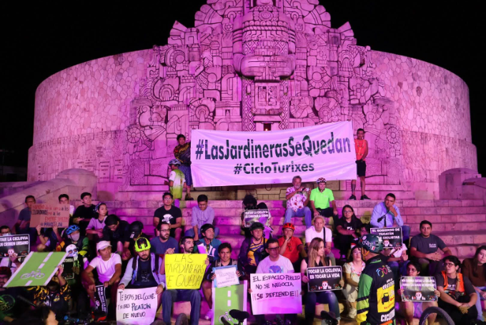 A tal grado de que, el sábado 1 de noviembre, el colectivo identificado como Cicloturixes[2] realizó una protesta pacífica en la glorieta donde se ubica el monumento a la patria. Con la intención de llamar a la sociedad a defender estos espacios públicos y que este colectivo (su representante) sea considerado dentro de las mesas de diálogo en conjunto con la sociedad civil para hablar del tema.