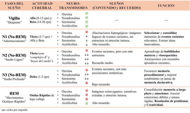 La reducción en los niveles de noradrenalina y de serotonina –dos neurotransmisores clave para la vigilia– hace que el cerebro se libere de asociaciones lógicas. Esto facilita la combinación de ideas inesperadas y la creación de imágenes extravagantes, un proceso similar al efecto alucinógeno del LSD.