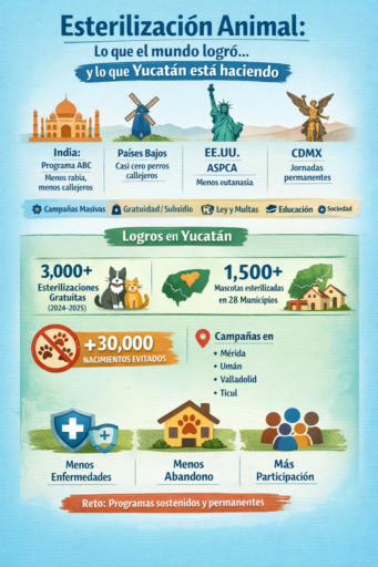 Mientras en Yucatán el tema de perros y gatos en situación de calle sigue siendo parte de la conversación pública, experiencias globales exitosas han demostrado que la esterilización masiva, gratuita y sostenida es una de las herramientas más eficaces para controlar la sobrepoblación y mejorar la salud pública. Al mismo tiempo, un conjunto de datos recientes muestra que en la entidad se están llevando a cabo acciones relevantes, aunque con retos y oportunidades para potenciar su impacto.