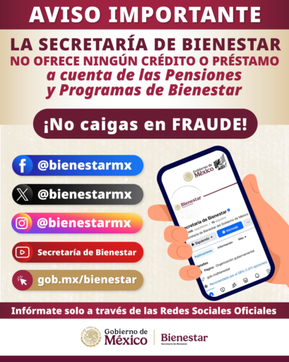 Ante estas situaciones, la propia Secretaría del Bienestar ha informado que no brinda ningún tipo de crédito o bono a cuenta de las Pensiones o Programas para el Bienestar. Por esto, lo mejor es mantenerte alerta al recibir informaciones de este tipo y siempre verificar antes de ingresar a sitios desconocidos o brindar datos personales.