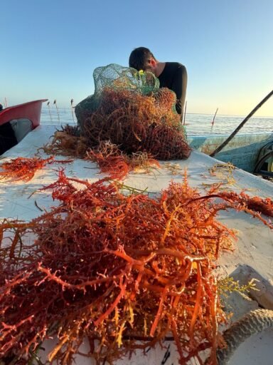 El tipo de alga que se cultiva en la zona es (filo Rhodophyta), nativa de la región. Sin embargo, es la primera vez que se cosecha con fines de comercialización.