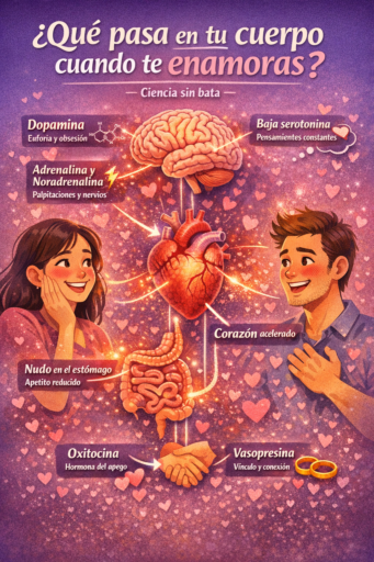 En resumen: cuando te enamoras, tu cerebro se inunda de químicos, tu corazón se acelera, tu estómago se descoloca y tu razón se toma vacaciones. No es debilidad, ni exageración, ni locura: es biología pura. Amar es uno de los experimentos más intensos que puede vivir el cuerpo humano, y ocurre sin bata, sin laboratorio y sin pedir permiso.
