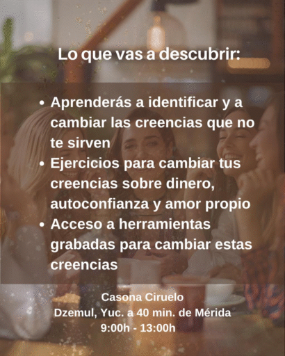 En este encuentro, las asistentes trabajarán temas clave como el amor propio, la autoconfianza y la relación con el dinero, reconociendo cómo las creencias heredadas y los miedos inconscientes pueden limitar el bienestar personal y profesional.